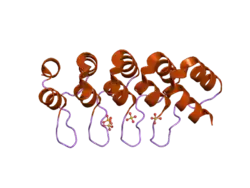 - ↑ P. Bork: Hundreds of ankyrin-like repeats in functionally diverse proteins: mobile modules that cross phyla horizontally? In: Proteins. Band 17, Nr. 4, Dezember 1993, S. 363–374, doi:10.1002/prot.340170405, PMID 8108379.