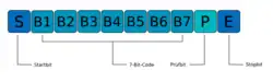 Die Übertragung geschieht durch ASCII-Zeichen (7-Bit-Code), womit man sich vor allem an die gewöhnliche Darstellung der Schnittstellen an den Messgeräten gehalten hat. Zusätzlich bekommt der ASCII-Code ein Paritätsbit mitangehängt. Dieses zusätzliche Bit ermöglicht eine Fehlererkennung bei der Übertragung. Damit besteht der Code-Rumpf aus 8 bit. Bit 1–5 ordnen die Übertragung einer Adresse zu, Bit 6 kennzeichnet, ob es sich bei der Adresse (Bit 1–5) um eine Sende- oder Empfangsadresse handelt, Bit 7 nimmt den gleichen Zustand wie Bit 6 an und Bit P stellt das Paritäts- bzw. Prüfbit dar. Der Empfänger kann nun anhand des Paritätsbits prüfen, ob bei der Übertragung einzelne Bits verfälscht wurden. Es prüft im 7-Bit-Code auf die Zustände der einzelnen Bits und setzt die Parität auf 1 wenn die Anzahl der Einsen gerade ist (Gerade Parität) und auf 0, wenn die Anzahl ungerade ist. Nach dieser Aufforderungsprozedur, werden die Daten mittels verschiedenen Steuerzeichen diese in der Norm definiert sind übertragen. Die Information an sich werden in 128 Zeichen langen Paketen versendet. Anschließend wird die Verbindung durch die Abschlussübertragung beendet.