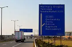 Edirne ↔ Kırklareli ↔ Lüleburgaz ↔ İstanbul ↔ Gebze ↔ İzmit ↔ Adapazarı ↔ Düzce ↔ Bolu ↔ Gerede ↔ Çerkeş ↔ Çorum ↔ Merzifon ↔ Amasya ↔ Erbaa ↔ Suşehri ↔ Erzincan ↔ Aşkale ↔ Erzurum ↔ Horasan ↔ Ağrı ↔ Doğubeyazıt