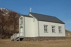 Die Vallakirkja auf dem Hof Vellir am Beginn des Tales, in der eine Kanzel von 1747 und ein Taufbecken von 1946 stehen, wurde 1861 erbaut.[9] Nach umfassender Renovierung und teilweisem Neubau wurde sie 2000 neu geweiht.[10]