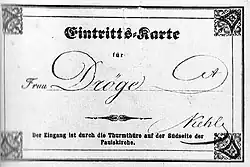 Zutritt zur Damengalerie, die 200 Plätze aufwies, hatten nur Frauen mit einer Eintrittskarte, die sie von einem Abgeordneten erhalten hatten. Die Abgeordneten wiederum erhielten die Karten im Sekretariat der Nationalversammlung. Etwas später richtete die Versammlung noch zusätzliche Plätze ein, die sich erhöht neben der von einem Germania-Gemälde verdeckten Orgel befanden und unabhängig vom Geschlecht vergeben wurden.[5][3][6]