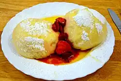 vgl. Friedrich Kluge, Elmar Seebold (Hrsg.): Dampfnudel, in: Etymologisches Wörterbuch der deutschen Sprache, 22. Auflage, De Gruyter, Berlin 1989, (Nachdruck 2015), ISBN 3-11-084503-2. - ↑ Eckhard Supp: Duden. Wörterbuch Kochkunst. Von Amuse-Bouche bis Zierschnee. Dudenverlag, Mannheim u. a. 2011, ISBN 978-3-411-70392-0, Kapitel: Regionale Gerichte im deutschsprachigen Raum, S. 87.
