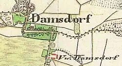 1602 wurden "8½" Bauern, acht Kossäten und drei Häusler im Ort registriert. Außerdem gab es ein Amtsvorwerk, auf dem 606 Schafe gehalten wurden. 1605 hatte der Schulze zwei Lehn- und zwei Erbhufen, sieben Bauern hatte je vier Hufen, ein Bauer (Halbbauer) hatte nur zwei Hufen. 1607/8 wurden auf den Vorwerk sogar 684 Schafe gehalten. 1624 wohnten im Ort: neun Bauern, sieben Kossäten, ein Hirte, ein Pachtschäfer, ein Schmied, zwei Paar Hausleute und ein Hirtenknecht. Das sechs Hufen umfassende Vorwerk gehörte zum Amt. Nach dem Dreißigjährigen Krieg 1652 wohnten noch fünf Bauern und sieben Kossäten im Dorf. Im Jahre 1662 wird, dass dem Amtsvorwerk "vor etlichen Jahren" ein wüstes Bauerngut beigelegt worden ist. Das Vorwerk hielt zwei Ochsen, 535 Schafe, 29 Schweine und zwei Pferde. 1687 waren immer noch vier Bauernhöfe und zwei Kossätenhöfe wüst. Insgesamt waren 5⅓ Hufen ausgefallen, da sie '"sandig und bewachsen waren". Der im Dorf tätige Schmied wurde zu den Kossäten gerechnet. Der Betreiber des Kruges hatte auch das Braurecht. Weiter gab es einen Amtsschäfer, zwei Knechte und den Dorfhirten. 1729 waren zwei Schweizerfamilien angesetzt worden; trotzdem war immer noch ein Hof nicht besetzt. Das Amtsvorwerk hatte 481 Morgen 68 Quadratruten Acker, auf dem Roggen, Hafer, Gerste und Erbsen angebaut wurden, 68 Morgen 118 Quadratruten Wiese und 24 Morgen 153 Quadratruten Viehkoppeln. Auf dem Vorwerk wurden 20 Kühe, 12 Stück Güstevieh, 700 Schafe sowie Schweine und Federvieh gehalten. 1746 war anscheinend das wüste Bauerngut ganz zum Vorwerk gelegt worden. Die zwei Lehnhufen des Schulzen waren ein Lehen des v. Görne zu Gollwitz. Es wird erstmals ein Leineweber und ein Schulmeister genannt; beide werden als Häusler bezeichnet. 1772 wohnten ein Freischulze, sechs Bauern und 14 Kossäten in Damsdorf. Die Schmiede wird erwähnt. 1801 wohnten im Dorf und dem Amtsvorwerk, der Lehnschulze, fünf Ganzbauern, ein Halbbauer, acht Ganzkossäten, neun Büdner, 16 Einlieger, fünf Schiffer und ein Krüger; insgesamt zählte das Dorf 60 Feuerstellen und 254 Einwohner. Im Jahr 1858 war der Gebäudebestand im Dorf: ein Abbau (Windmühle), fünf öffentliche Gebäude, 41 Wohnhäuser und 69 Wirtschaftsgebäude, der Gutsbezirk hatte zwei Wohngebäude und vier Wirtschaftsgebäude. Um 1900 gab es 76 Häuser. 1906 gehörten noch dazu das Chausseehaus und die Mühle. 1931 waren es 75 Wohnhäuser mit 100 Haushaltungen.