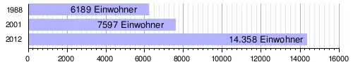 Im Hauptort lebten bei der Volkszählung 2012 14.358 Einwohner in 1955 Haushalten,[1] bei der Volkszählung 2001 7597 in 1168 Haushalten[7] und bei der Volkszählung 1988 6189 in 1065 Haushalten.[8]
