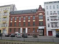 Danziger Straße 50 - Doppel-Schulgebäude mit einem ehemaligen Rektorenwohnhaus in der Danziger Straße 50 Ecke Dunckerstraße 64, 1893/1894 als 162. und 197. Gemeindeschule für Knaben errichtet, roter Klinkerverblendbau mit grün glasierten Schmuckziegeln, Baumeister Hermann Blankenstein und Vinzent Dylewski;[8] nach 1990 als Zentrum danziger 50 bezeichnet und genutzt durch eine Vielzahl kleiner Kultur- und Bildungseinrichtungen. Im November 2008 begann eine Grundinstandsetzung und ein Umbau. Die Arbeiten wurden aus Mitteln der Europäischen Union und des Landes Berlin gefördert,[9]