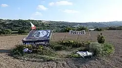 Caruana Galizia wurde am 16. Oktober 2017 mit einer Bombe in einem Auto getötet, kurz nachdem sie von ihrem Haus in Bidnija aus losgefahren war, explodierte ihr gemieteter Peugeot 108. Der Pkw wurde durch die Wucht der Explosion über eine Mauer auf ein angrenzendes Feld geschleudert.[14]