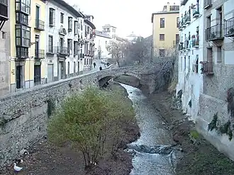 Die letzten 1,6 Kilometer des Verlaufs bis zur Mündung in den Genil am Paseo del Violón in Granada sind seit dem 19. Jahrhundert durch die Plaza Nueva, die Calle Reyes Católicos und die Acera del Darro überbaut, bei der Kirche Santa Ana y San Gil verschwindet der Fluss im Untergrund.