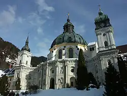 Das Kloster Ettal wurde 1330 gegründet und erhielt mit der in deutscher Sprache abgefassten Ettaler Regel 1332 eine niedergeschriebene Lebensordnung, die den Alltag im Kloster festlegte. Neben Priestern und Mönchen sollten so auch 13 Ritter mit ihren Frauen im Kloster leben.[46] Starb ein Ritter, durfte seine Frau bis zu ihrem Tod im Kloster bleiben.[47] Die Ritter und ihre Frauen durften auf die Jagd gehen und spielen, jedoch nicht um Geld. Auch das Tanzen und übermäßiger Alkoholgenuss war untersagt,[48] Kinder durften nicht ins Kloster mitgebracht werden; im Kloster geborene Kinder mussten Ettal nach ihrem dritten Lebensjahr verlassen. Die Kleidung sollte einfach sein und war farblich festgelegt.[49] Ritter durften keine eigenen Pferde haben, konnten sich jedoch bei dem Kloster vorstehenden Meister Pferde borgen.