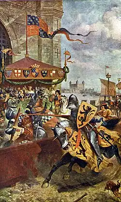 Lindsay war ein bekannter Turnierchampion, der am Georgstag 1390 in einem bemerkenswerten Tjost-Duell auf der London Bridge gegen den englischen Champion John Welles, 5. Baron Welles kämpfte. In diesem Duell warf Lindsay Welles so leicht vom Pferd, dass die Menge zu rufen begann, er habe sich an seinem Sattel festgenagelt. Um zu beweisen, dass dem nicht so war, sprang Lindsay in voller Rüstung vom Pferd und wieder zurück auf sein Pferd.[3] Viele Historiker sind der Ansicht, dass Lindsay auch der Organisator der Schlacht der Clans in Perth (Battle of the North Inch) im Jahr 1396 war.