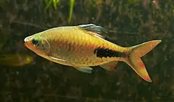 - ↑ Schwarzfleckbarbe auf Fishbase.org (englisch)