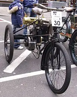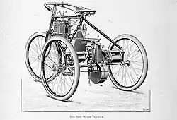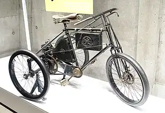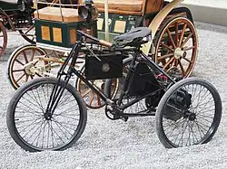 1895 gelangten die ersten Tricycles mit diesem Motor in den Verkauf.[10] Allerdings war der Motor mit dieser Leistung eher als Hilfe am Berg nützlich.[11] Mehrere Autoren nennen 1896 als Einführungsjahr.[12][13][14][15]