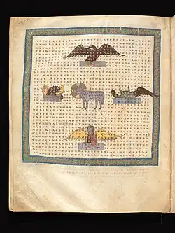 - ↑ Vgl. Klaus Gereon Beukers, Kreuzeslob. Frühmittelalterliche Bildgedichte von Hrabanus Maurus. Kunsthistorischer Kommentar zur Faksimile-Ausgabe der Handschrift aus der Biblioteca Apostolica Vaticana Reginensis latinus 124. Belser, Stuttgart 2019, S. 17.