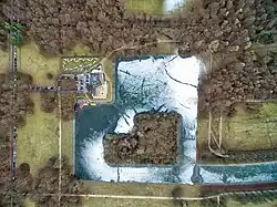 Ein quadratischer Teil mit einer unzugänglichen Mittelinsel und einer quadratischen Aussparung in der nordwestlichen Ecke für die gastronomische Einrichtung „Haus am See“ mit Außenterrasse wird durch einen Kanal, der von einer Kastanienallee begleitet wird, mit einem größeren Becken im Südosten verbunden. In das südöstliche Ende ragt wiederum eine größere quadratische Fläche hinein, die mit einer aufgeweiteten Platanenallee bestanden ist. Hier ist ein breiter Bootssteg angelegt. Ein weiterer befindet sich am Nordufer des Kanals in der Nähe von Anlagen des ehemaligen Fort VI, in denen Boote gelagert werden können.