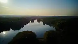 Der Weiher hat eine Größe von etwa 20 ha und eine Tiefe von etwa 1,50 m, der Aushub wurde auf der südlichen Seite zu Aussichthügeln aufgeschüttet, die im Winter zu Schlittenabfahrten genutzt werden.