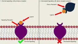 Durch die Bindung von Liganden an Decoy-Rezeptoren stehen den funktionalen Rezeptoren weniger Liganden zur Verfügung, wodurch die funktionalen Rezeptoren weniger aktiviert werden. Dadurch wirken Decoy-Rezeptoren als kompetitiver Inhibitor ihres jeweiligen funktionalen Gegenstücks.