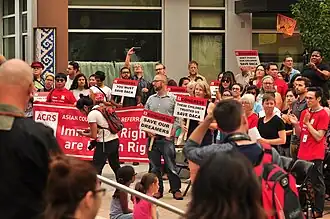 Vor dem Weißen Haus in Washington und in weiteren Städten der USA wurde gegen Trumps Entscheidung protestiert. Entsetzt, empört und wütend reagierten auch Organisationen von Migranten und Bürgerrechtlern.[12]