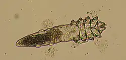 Demodex folliculorum, Stadien (v. l. n. r.): | ||||||||||||