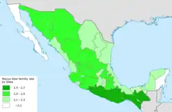 Das schnellste Bevölkerungswachstum findet derzeit in den nördlichen Bundesstaaten statt aufgrund der wirtschaftlichen Chancen, die sich aus der Grenznähe zu den Vereinigten Staaten ergeben. Die höchsten Geburtenraten verzeichnen die südlichen Bundesstaaten des Landes, die jedoch ein hohes Ausmaß an Abwanderung verzeichnen.
