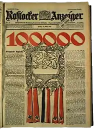 Der Rostocker Anzeiger titelt mit der Überschreitung der 100.000-Einwohner-Grenze