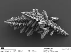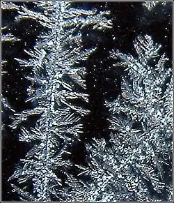 Dendriten entstehen bei der Kristallisation einer übersättigten Gasphase oder Schmelze, wenn die Kristallstruktur bevorzugte Wachstumsrichtungen aufweist und neue Substanz bevorzugt an den Ecken oder Kanten des Kristallkeims angelagert wird, während das Wachstum der Kristallflächen dahinter zurückbleibt.[2]