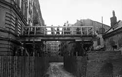 ↑Die drei weiteren Holzbrücken befanden sich über der Mławska-Straße, an der Kreuzung der Żelazna- und Leszno-Straße und über der Chłodna-Straße, an der Ecke der Żelazna-Straße. Siehe: Barbara Engelking, Jacek Leociak: Getto warszawskie – przewodnik po nieistniejącym mieście. Verlag IFiS PAN, Warschau 2001, ISBN 83-87632-83-X, S. 121 (polnisch).