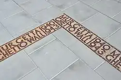 Vierzehn Tafeln wurden auf den speziell erstellten Betonsäulen mit einer Höhe von 230 cm platziert und auf einem Pflasterstein gestellt, weitere Tafeln befinden sich direkt an Mauern und Wänden von Gebäuden.