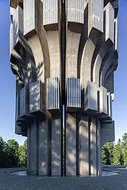 Das Denkmal für die Revolution (serbokroatisch Spomenik Revoluciji) ist ein Denkmal des jugoslawischen Bildhauers Dušan Džamonja (gemeinsam mit der Architektin Marijana Hanzenković[1]), welches von 1971 bis 1972 im Nationalpark Kozara im heutigen Bosnien und Herzegowina errichtet wurde. Es erinnert an die gefallenen Partisanen der Kozara-Offensive (von den Achsenmächten als Operation West-Bosnien bezeichnet) im April 1942. Nachdem die Partisanen eine Reihe von Gebieten erkämpfen konnten, mobilisierten die Achsenmächte tausende Soldaten, davon 15.000 Soldaten von der Wehrmacht, dazu 22.000 Soldaten der Ustascha und weitere Soldaten faschistischer Organisationen. Dagegen standen 3.000 Partisanen mit etwa 60.000 untrainierten Unterstützern aus der Zivilbevölkerung. Nur 900 Partisanen überlebten den Kampf und mindestens 10.000 Zivilisten verloren ihr Leben. Es war eine der tragischsten Niederlagen der Partisanen. Nur die Minderheit der getöteten Männer waren bewaffnete Partisanen. Im August 1942 befanden sich 50.000 Männer, Frauen und Kinder, hauptsächlich Serben, aus der Kozararegion in Gefangenschaft der Deutschen. Viele von ihnen wurden von der Ustascha in das Lager Jasenovac gebracht und dort ermordet.[2]