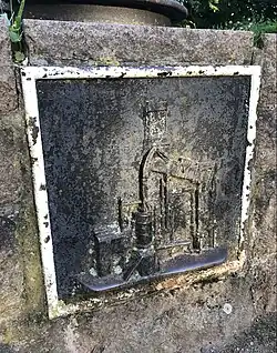 Auf der Rückseite des Denkmals befindet sich am Sockel eine weitere Tafel, auf der die Dampfmaschine in Funktion dargestellt ist.