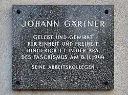 Im Betriebsbahnhof Rudolfsheim (15., Schwendergasse 51) befindet sich an der Betriebshütte an der Einfahrt zur Remise zwischen den Gleisen eine Gedenkstätte für die Opfer des Faschismus. Im Betriebsbahnhof wirkte eine Widerstandsgruppe, der vor allem Mitglieder des Schutzbundes angehörten. Eine Gedenktafel für einen ihnen, die ihm von seinen Arbeitskollegen gewidmet wurde, war Johann Gärtner (* 1894), der von der Gestapo verhaftet und am 8. November 1944 hingerichtet wurde.