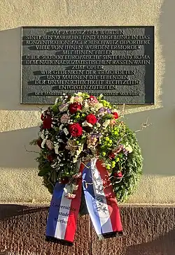 Auf Initiative des Hessischen Landesverbands Deutscher Sinti und Roma und Marburger Sinti im August 1990 beschloss die Stadtverordneten-Versammlung Marburgs ein Jahr später eine Gedenktafel für die ortsansässigen Sinti und Roma, die Opfer des Nationalsozialismus wurden, anzubringen. Am 50. Jahrestag der Deportation, am 23. März 1993, wurde die Gedenktafel am alten Landratsamt in der Marburger Oberstadt, wo die verhafteten Männer, Frauen und Kinder vor ihrem Abtransport im Keller gesammelt worden waren, gemeinsam von Bürgermeister Gerhard Pätzold (SPD) und Adam Strauß, dem Vorsitzenden des Landesverbands Deutscher Sinti und Roma enthüllt. Seit 1998 findet dort am 23. März ein jährliches Gedenken statt, das gemeinsam von der Stadt und dem Landesverband organisiert wird.[7]