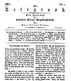 Der Telegraph, Untertitel: Ein Journal der neuesten Kriegsbegebenheiten von Karl Julius Lange, war die erste, täglich erscheinende Zeitung Berlins.