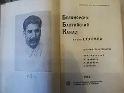 - ↑ Vergleiche Der Bau des Weißmeer-Kanals (spiegel.de). – Mit dem russischen Originaltitel Беломорско-Балтийский канал имени Сталина: История строительства, 1931–1934 гг. Belomorsko-Baltijski kanal imeni Stalina: Istorija stroitelstwa, 1931–1934 gg. (wissenschaftliche Transliteration Belomorsko-Baltijskij kanal imeni Stalina : Istorija stroitel'stva, 1931–1934 gg.) „Der nach Stalin benannte Weißmeer-Ostsee-Kanal: Baugeschichte, 1931–1934“.