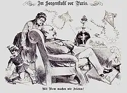 Der deutsche Politiker Otto von Bismarck wurde aufgrund seiner überkämmten Glatze häufig mit Glatze und drei Haaren karikiert, insbesondere in der Satirezeitschrift Kladderadatsch. Er wurde damit unter anderem als Pfau und als Saturn dargestellt. Die satirische Darstellung spielt auf die Redewendung aus dem Märchen an.[32]