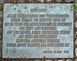 Zu Füßen des Reliefs erinnert eine Metallplatte an alle Deserteure und Kriegsdienstverweigerer. Auf ihr ist zu lesen: