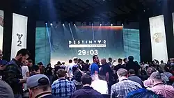 Destiny 2 ist ein Mehrspieler-Computerspiel, entwickelt von Bungie und veröffentlicht von Activision. Bungie und Activision wurden im Jahre 2019 unabhängig voneinander. Der Ego-Shooter ist ein reines Onlinespiel und wurde für die PlayStation 4 und die Xbox One am 6. September 2017 veröffentlicht. Die Version für Microsoft Windows wurde am 24. Oktober 2017 veröffentlicht.[2][3] Außerdem erschien das Spiel für Google Stadia,[4][5] Xbox Series X und S sowie die PlayStation 5.[6] Destiny 2 ist der Nachfolger des 2014 erschienenen Destiny.