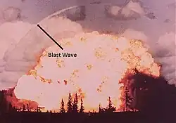 Eine Detonationswelle ist die Stoßwelle, die sich aufgrund einer Explosion nach allen Seiten ausbreitet, falls die ursprüngliche Expansionsgeschwindigkeit größer ist als die Schallgeschwindigkeit im umgebenden Medium.