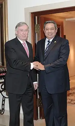 Außerdem unterstützt Deutschland Indonesien auch in Reformbemühungen für mehr Stabilität in dessen Regierungs- und Verwaltungsstrukturen und Haushalt. Große Unterstützung finden auch Indonesiens weitreichende Pläne im Bereich erneuerbare Energien. Präsident Yudhoyono erhielt viel Anerkennung, als er die Staatsschulden von 80 Prozent auf nur noch 24 Prozent des Bruttoinlandsproduktes senkte.[7][8]