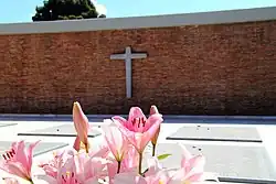 Eine Treppe führt zum höher gelegenen Kameradengrab in einem vorgelegenen Hof. In der Mitte befindet sich eine Gedenktafel mit den Namen von 28 bekannten und drei unbekannten Soldaten, die hier begraben sind. Auf weiteren acht Steinplatten sind die Namen von 128 deutschen Soldaten geschrieben, die während ihres Einsatzes auf Sizilien in den Jahren 1941 bis 1943 gefallen sind. Im Zentrum dieses Hofes liegt auf einem Sockel eine Statue in Bronze, die einen sterbenden Jüngling darstellt.[6]
