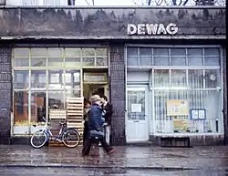 DEWAG-Filiale (rechts) in Merseburg (Bahnhofstraße), um 1980