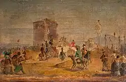 Unter den Künstlern entstand die Gepflogenheit, Neuankömmlinge an der Milvischen Brücke, dem Ponte Molle, zu empfangen, wobei der Ankommende seinen Freunden zum Einstand ein Fass Wein ausgab.[1] Im Zuge der Institutionalisierung eines Frühlingsfestes der deutschsprachigen Künstler entstand 1813/1814 die Ponte-Molle-Gesellschaft,[2][3] deren Mitglieder spaßeshalber die Umgangsformen eines Ritterordens annahmen. In Rom wurde diese Gesellschaft bald dadurch bekannt, dass sie jährlich um den 1. Mai einen karnevalistischen Festzug in die Campagna Romana zu den antiken Travertin-Steinbrüchen am Ufer des Aniene bei Tor Cervara (Torre Cervaro) bzw. Ponte Mammolo veranstaltete,[4] wo als „Cervarafest“ bzw. „Cervarofest“ oder – nach dem römischen Volksmund – als „carnevale dei Tedeschi“ ein Biwak mit „Olympischen Spielen“ abgehalten wurde. Auch wurde von Mitgliedern der Gesellschaft eine „Hilfskasse“ organisiert, die verarmte deutsche Künstler vor dem Hungertod bewahren sollte.