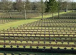 Der Soldatenfriedhof in Lommel (Belgien) ist der größte deutsche Soldatenfriedhof des Zweiten Weltkriegs im westeuropäischen Ausland. Auf einer Fläche von insgesamt 16 ha (427 × 350 m) liegen hier 542 Gefallene aus dem Ersten Weltkrieg und 38.569 Gefallene aus dem Zweiten Weltkrieg. Der Friedhof ist in 63 Felder mit bis zu 28 Reihen und 640 Gräbern gegliedert. Für jeweils zwei Gefallene wurde ein Kreuz gesetzt. In einigen Fällen liegen bis zu neun Soldaten in einem Grab. Ihre Daten sind in Metallschilder eingraviert, die auf beiden Seiten des Kreuzes angebracht wurden.