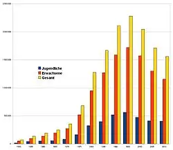 Anfang der 80er Jahre übersprang die Mitgliederzahl in den Vereinen die Millionengrenze und verdoppelte sich in nur zehn Jahren auf über zwei Millionen.[16]