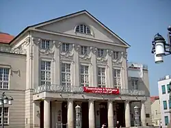 Das Deutsche Nationaltheater und die Staatskapelle Weimar (kurz DNT) ist der bedeutendste Bühnenbetrieb Weimars. Die Institution vereint die Sparten Musiktheater und Schauspiel sowie das Orchester Staatskapelle Weimar. Bespielt werden mehrere Bühnen im Stadtgebiet. Alle Sparten des Theaters und des Orchesters geben außerdem unregelmäßige Gastspiele und haben darüber hinaus Auftritte in den elektronischen Medien. Gesellschafter der Deutsches Nationaltheater und Staatskapelle Weimar GmbH – Staatstheater Thüringen sind der Freistaat Thüringen und die Stadt Weimar.[1] Mit Beginn der Spielzeit 2025/26 haben Valentin Schwarz, Dorian Dreher und Timon Jansen als Teamintendanz die Leitung übernommen.