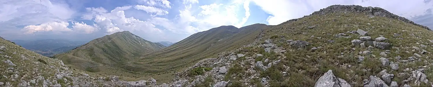 Der Berg fällt steil und über 1000 Meter nach Westen und Osten ab. Südlich des Gipfels befindet sich ein rund 600 Meter tiefer Einschnitt im Gebirgszug, der Dhëmbel-Passes, der den Berg von der Nemërçka trennt. An das weitläufige Gipfelplateau schließt sich nach Norden ein breiter Rücken an, der nur langsam an Höhe verliert. Als gerader Kamm zieht sich der Berg über mehr als ein Dutzend Kilometer nach Nordwesten, bevor er allmählich bei Këlcyra ausläuft und durch die Vjosa-Schlucht, die dort den Gebirgszug durchbricht, begrenzt wird.[3]