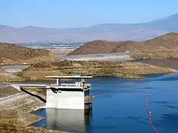 1999 wurde mit dem Füllen des Stausees begonnen; das Wasser stammte vom Colorado River Aqueduct und dem San Diego Canal. Es wurde zuerst ins Einlaufbecken, eine 140.000 m² große und 620.000 m³ Wasser fassende Mulde geleitet, ehe es das Pumpwerk erreichte. Das Pumpwerk wurde nach einem der Gründer des Metropolitan Water Districts, Hiram W. Wadsworth, benannt,[5] und umfasst zwölf einzelne Pumpen, die jeweils über eine Leistung von 6000 PS (4500 kW) verfügen. Über sie gelangt das Wasser vom Einlaufbecken zum Turm für Wassereinlass und -auslass.[7] Im Jahr 2001 wurden vier Pumpen in Turbinen zur Stromerzeugung umgebaut, die eine Leistung von 3 MW erzeugen können. Hätte man alle zwölf Pumpen umgewandelt, läge die gesamte Anlage bei 40 MW.[8]