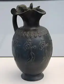 - ↑ Staatliche Antikensammlungen München, Inventarnummer 1114; etruskische Bucchero-Kanne; um 560 v. Chr.
