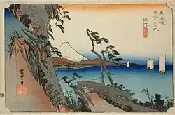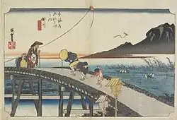 - ↑ Meiji-zeitliche Farbholzschnitte des Hoeidō-Tōkaidō von einem unbekannten Verleger auf Rare Posters, abgerufen am 28. Oktober 2014. (englisch)