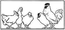 Das Märchen zielt offenbar auf die Charakterisierung von dreistem Hahn, ängstlichen Hühnern und auf die Imitation ihrer Laute. Die Verkleinerungsformen sprechen für Kinder als Adressaten. Wilhelm Grimm übernahm den Aargauer Dialekttext fast wörtlich.[1] Etwas ähnlich wären KHM 10 Das Lumpengesindel, KHM 27 Die Bremer Stadtmusikanten, KHM 41 Herr Korbes, KHM 80 Von dem Tode des Hühnchens.