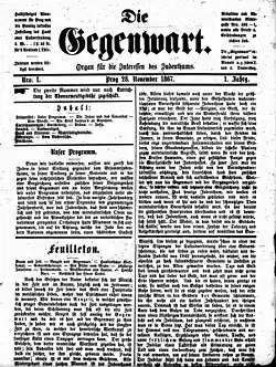 ![]() Die Gegenwart, Titelblatt der Erstausgabe vom 28. November 1867