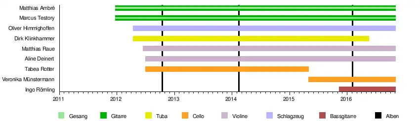 Im Frühjahr 2015 entschied sich Cellistin Tabea Rotter ihr Engagement auf unbestimmte Zeit ruhen zu lassen. Die Position am Cello wurde danach von Veronika Münstermann besetzt.[6] Am 13. Juni 2015 absolvierte die Band in einer abgespeckten Besetzung als Die Kammer minimized spontan einen Guerilla-Auftritt beim Blackfield-Festival in Gelsenkirchen auf einer Nebenbühne, als unangekündigter Pausenfüller. Am 21. Juni 2015 war die Kammer in alternativer Besetzung beim Mitternacht-Special auf dem Feuertanz-Festival in einer Besetzung nur mit Streichern zu hören. Des Weiteren sind die beiden Protagonisten Ambré und Testory seit November 2015 offizielle Endorser der Firma Framus und werden von dieser durch Akustikgitarren der Legacy-Serie unterstützt.